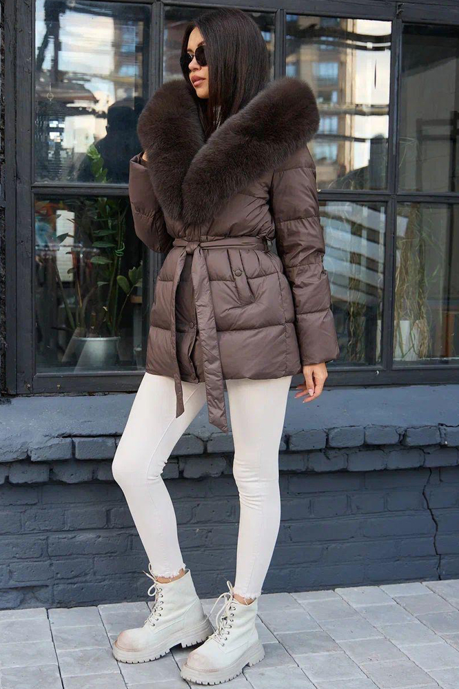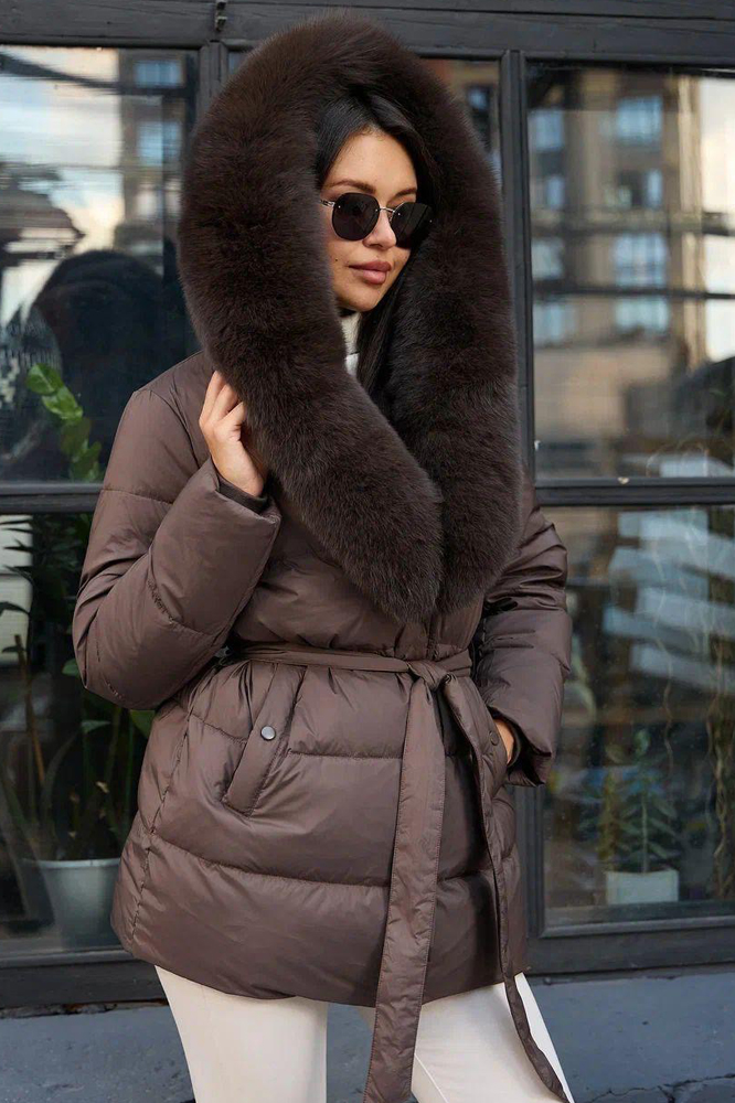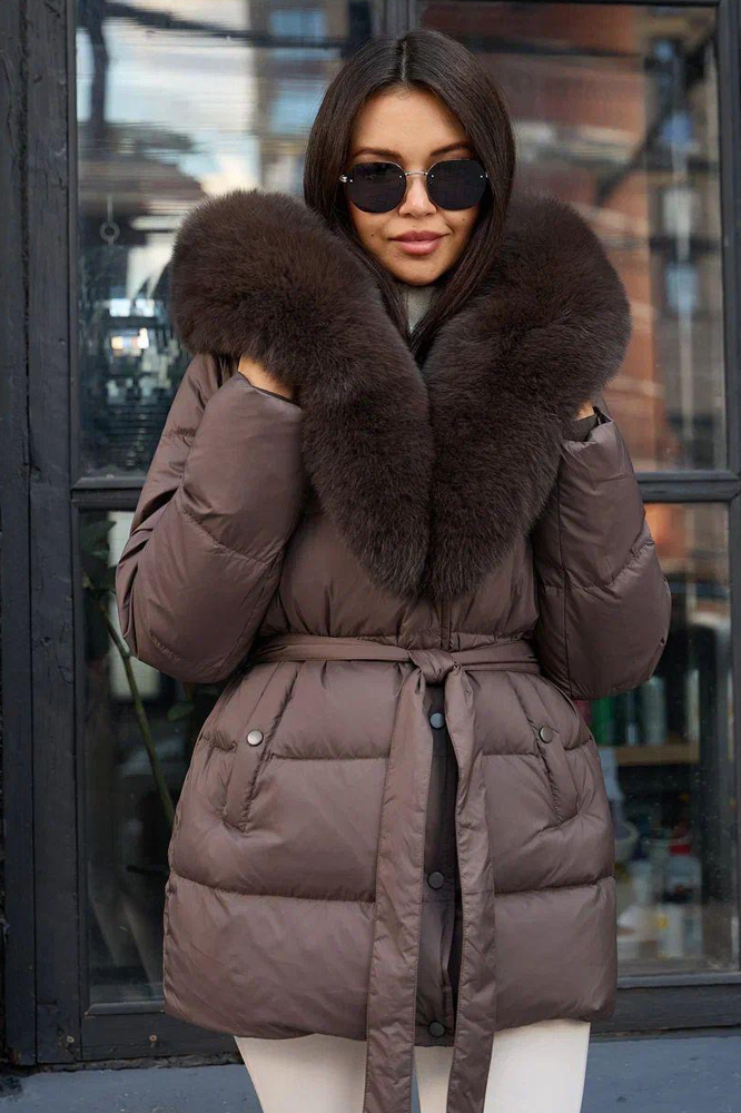 Коричневый женский пуховик 2025-2026 на зиму купить в Москве
