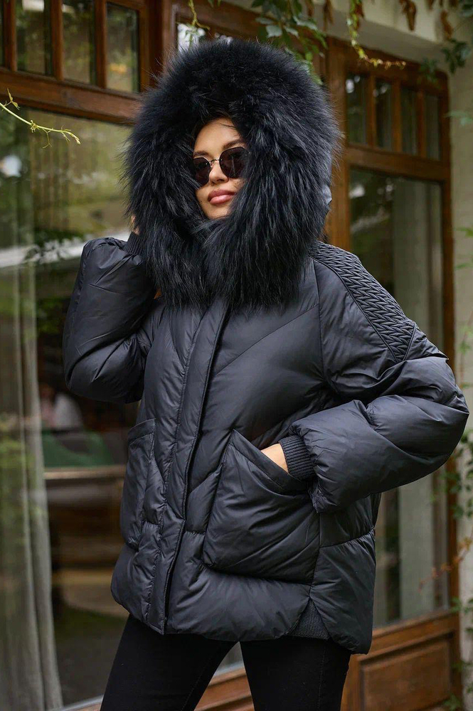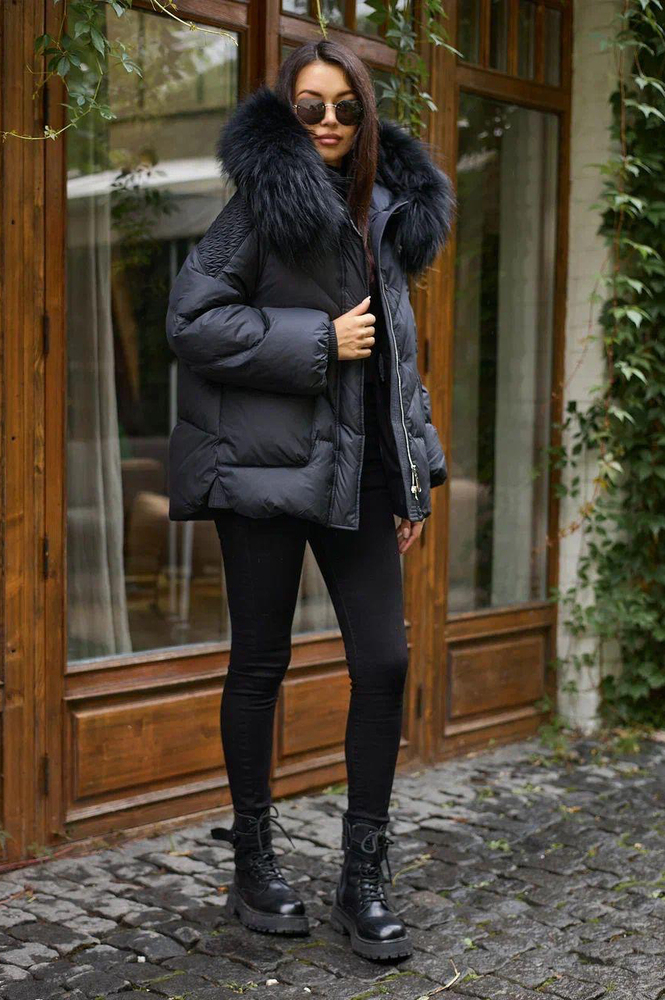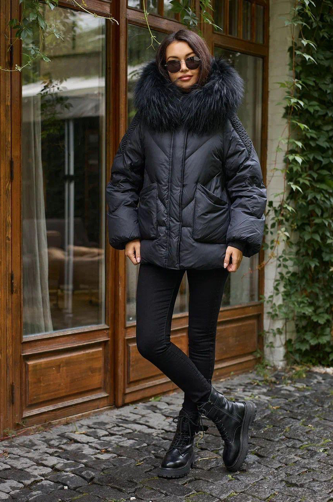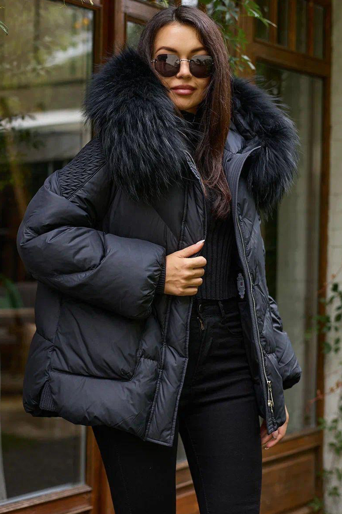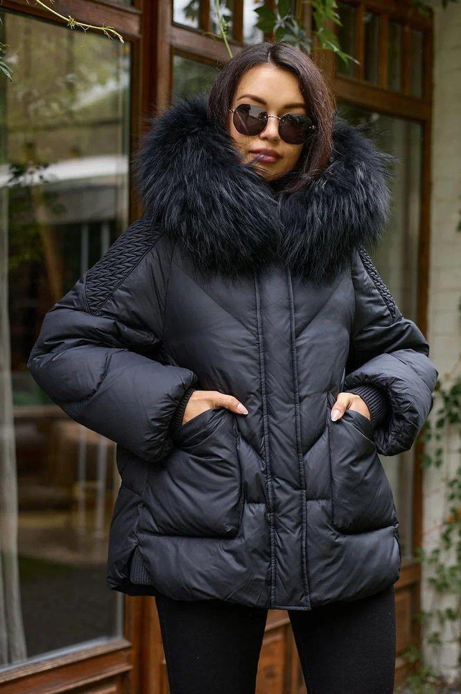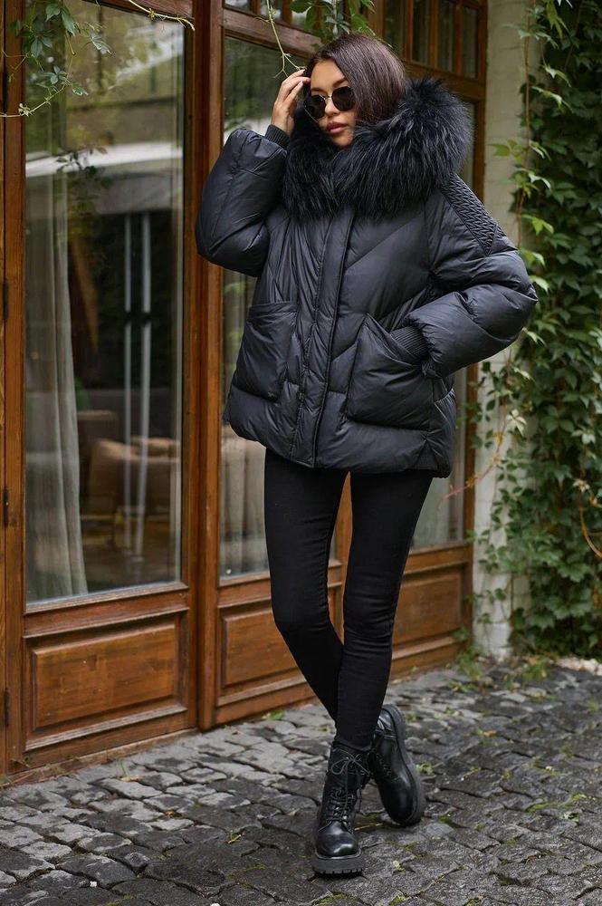 Черная куртка для зимы. Изделие утеплено пухом, следовательно оно легкое и теплое. Мех енот. Окантовывает крупный капюшон, создающий неповторимый внешний вид и вписывающийся гармонично в общую концепцию дизайна. Он хорошо защищает от осадков. Купить зимний пуховик можно в нашем магазине женской верхней одежды.