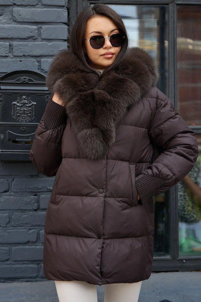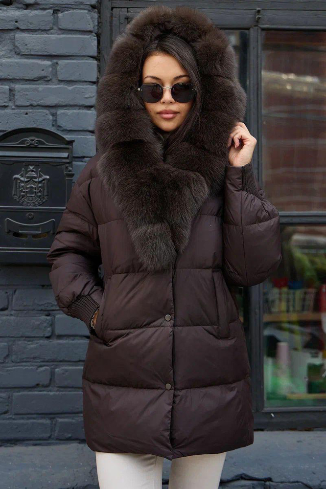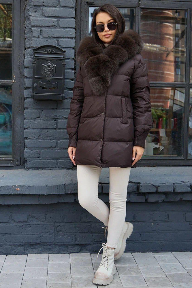 Качественный пуховик 2025-2026 коричневый купить в Москве