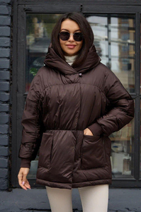 Коричневый короткий пуховик бомбер с матовым полиэстром. Модель комбинированная, очень стильная и модная. Необычная строчка по спине выделяет куртку из большого многообразия женской верхней одежды. Этот пуховик способен выдерживать очень сильные морозы, подойдет к любому молодежному стилю, а стоит недорого.