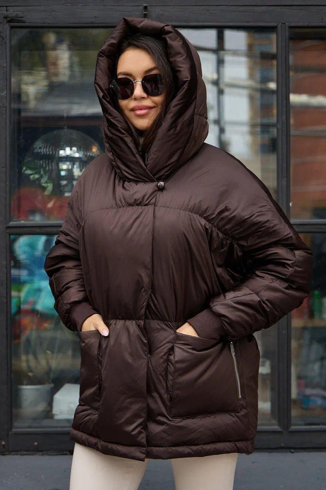 Короткий пуховик женский 2026 коричневый купить в Москве