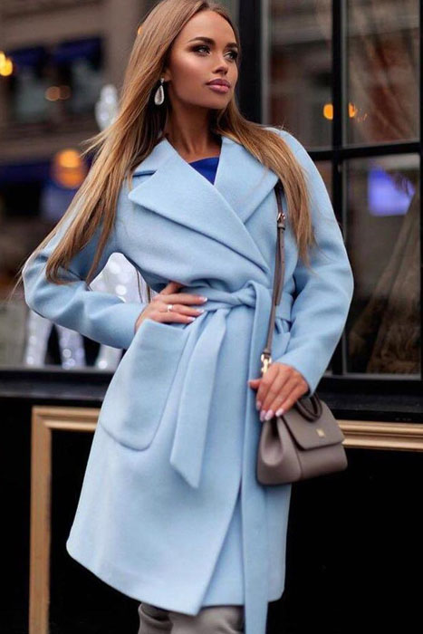 Превосходное по качеству короткое пальто в нежном голубом оттенке. Изделие короткой длинны кроя карандаш. Модель прикрывает колено, застегивается на кнопки с пуговками. В комплекте идет пояс. Ткань верха - кашемир, превосходный итальянский, мягкий и что немаловажно прочный. Подкладка с разноцветным орнаментом, рукава длинные. Воротник без меха, выполнен в классическом пиджачном стиле.