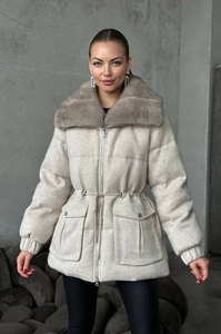 Модная пуховая парка на зиму 2025-2026 бренда Vivilona бежевого цвета. Эта стильная куртка выполнена из теплого и легкого пухового наполнителя, идеально подходящего для холодных дней. По вороту украшена декоративным мехом норки, который придает образу особую изысканность. Куртка обладает современным дизайном, сочетая функциональность и модные тенденции, что делает ее отличным выбором для зимних прогулок и активного отдыха.