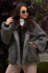 Очень теплый и модный пуховик Enva Rross кроя оверсайз выполнен из валяной шерсти, что обеспечивает высокую теплоизоляцию и стильный внешний вид. Модель украшена мехом песца вдоль молнии и на воротнике, добавляя роскоши и уюта. Наполнитель из пуха и пера гарантирует тепло даже в самые холодные дни. Широкие рукава и отложной воротник создают современный и комфортный силуэт, идеально подходящий для зимнего сезона 2025-2026. Этот пуховик — отличный выбор для тех, кто ценит уют, стиль и функциональность.