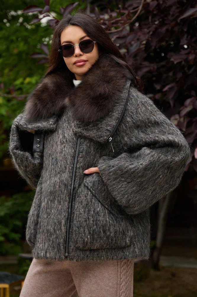 Модный пуховик Enva rross из валяной шерсти с песцом купить в Москве