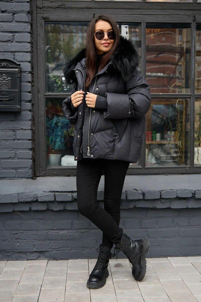 Черный зимний пуховик Vo Tarun выполнен в свободном оверсайз крое, что обеспечивает комфорт и современный стиль. Модель украшена мехом тонированного енота на капюшоне, который придает изделию изысканность и тепло. Тканевые манжеты на рукавах обеспечивают надежную защиту от ветра и сохраняют тепло внутри. Этот пуховик идеально подойдет для зимних прогулок и городских образов в сезоне 2025-2026, сочетая практичность, тепло и модный дизайн.