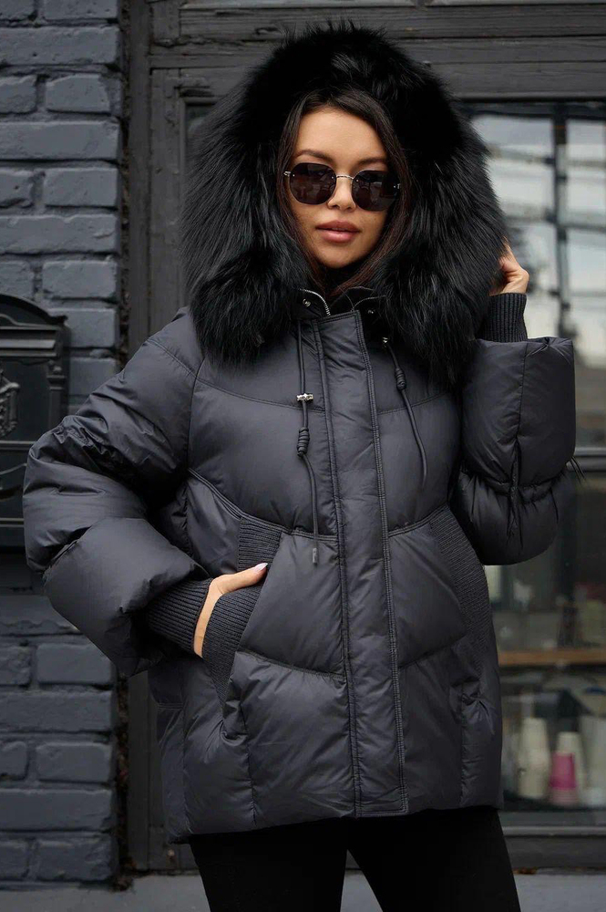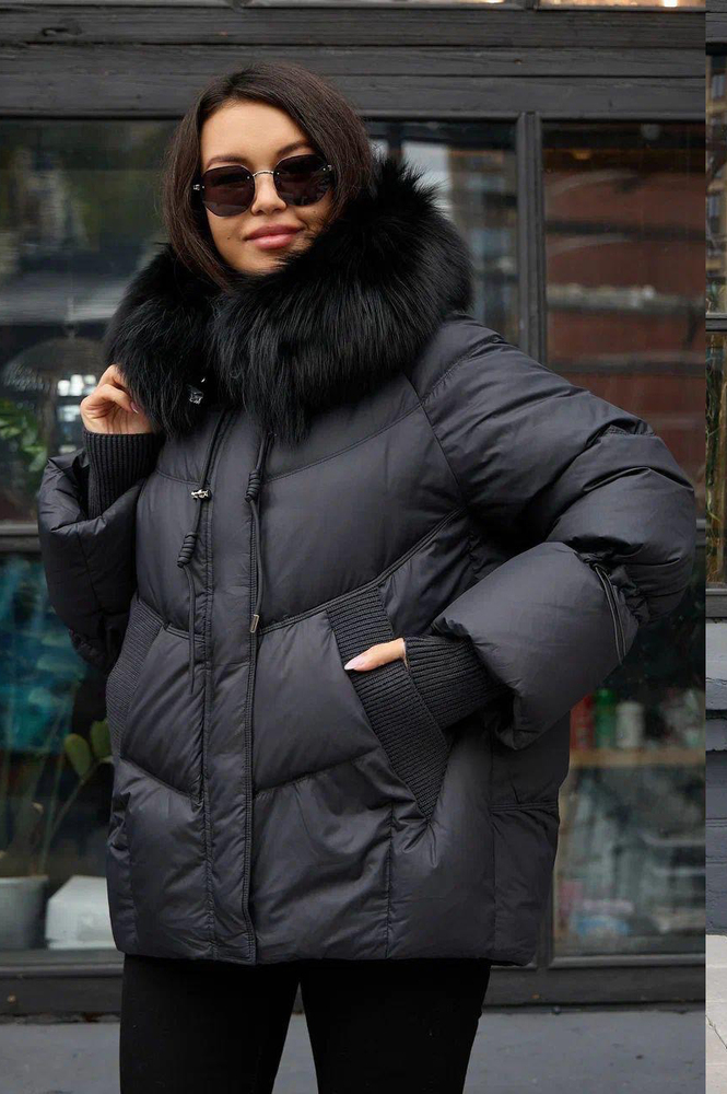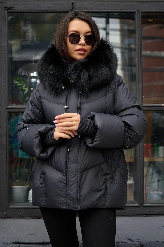 Зимний пуховик с мехом енота на капюшонечерный купить в Москве