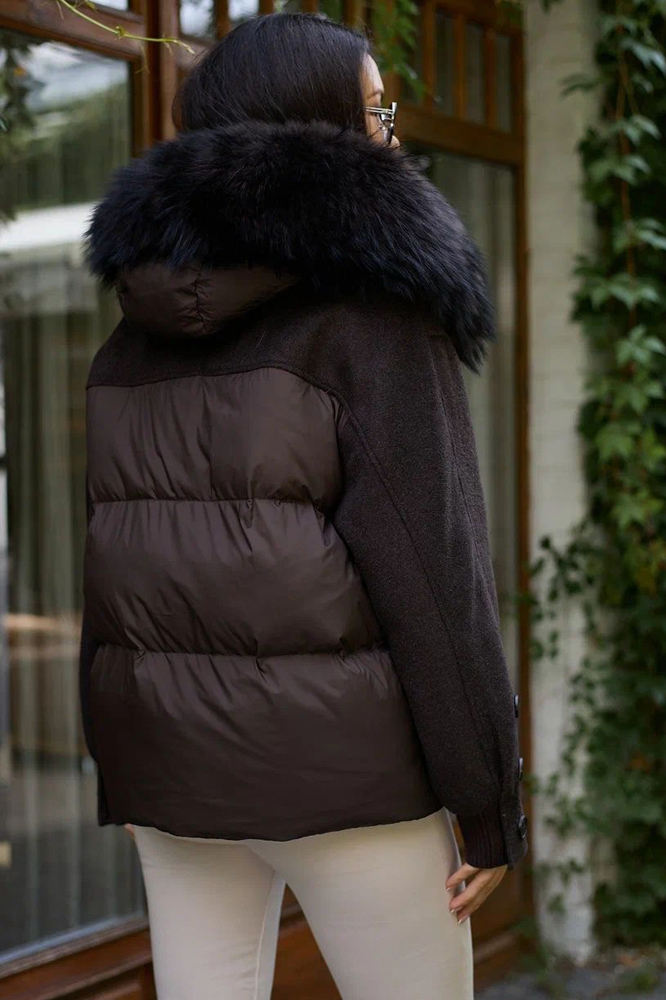 Эта модель от популярного бренда Btn button придется по душе женщинам, которые любят элегантные и теплые решения для холодного времени года. Короткий пуховик в шикарном шоколадном цвете создан для настоящих ценителей стиля и комфорта. Объемная и приятная на ощупь шерстяная вставка на плечах и спине создает красивые линии и добавляет мягкости образу. Оформленный капюшон с нежным мехом песца обеспечивает дополнительную защиту от ветра и усиливает эффектный внешний вид изделия. Втачные карманы позволят держать руки в тепле и станут полезным бонусом в процессе эксплуатации. Выбор этой модели даст возможность насладиться зимой с максимальным комфортом и удовольствием.
