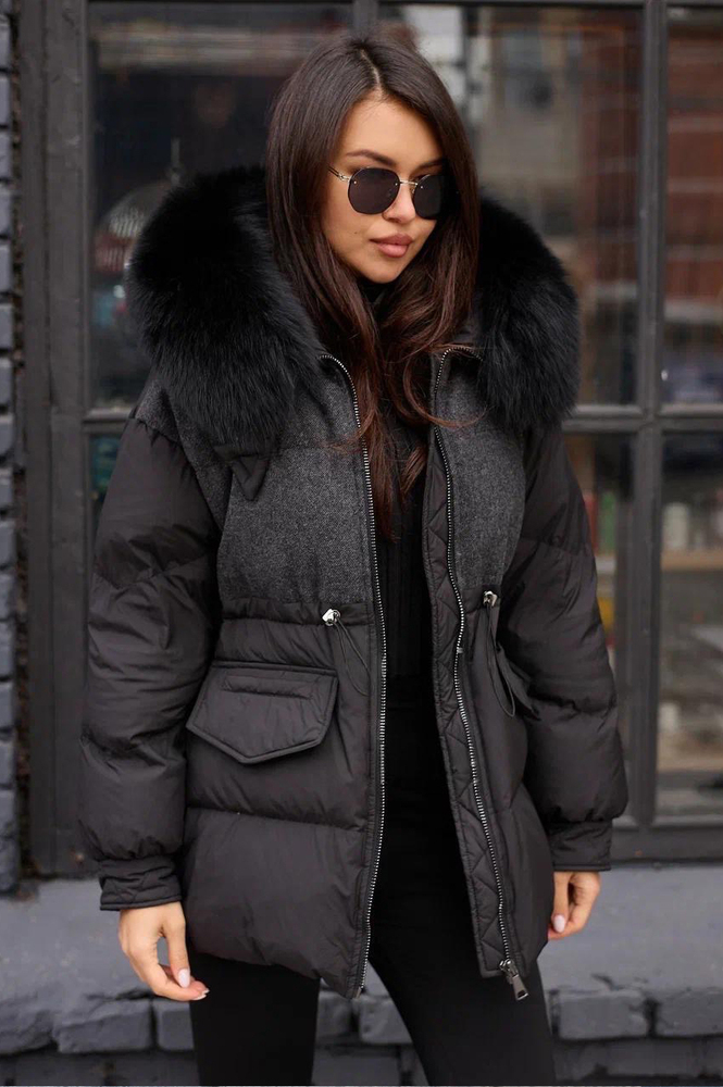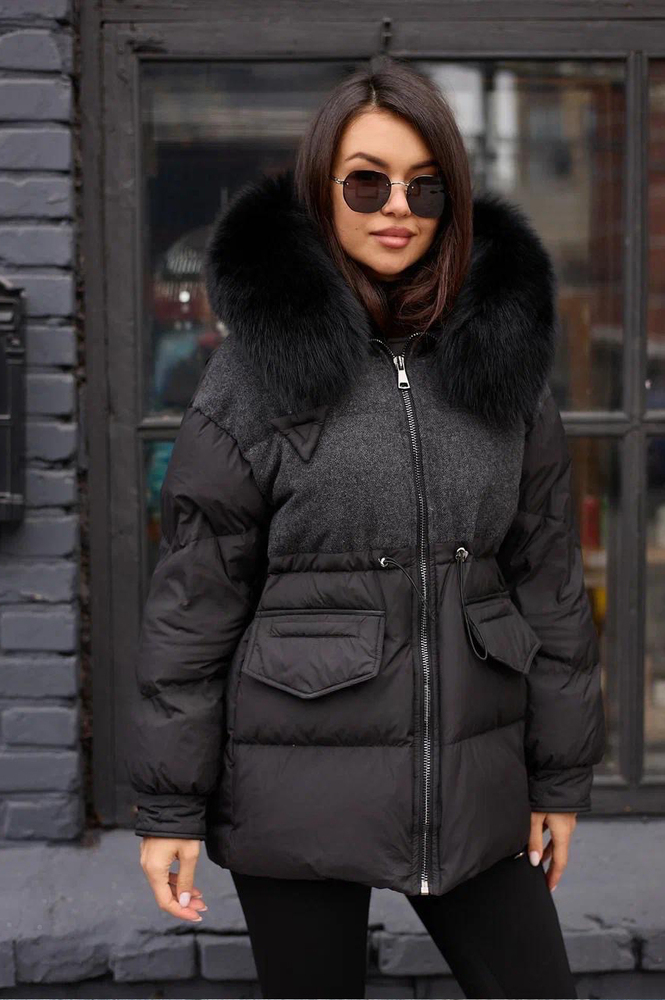 Молодежный зимний пуховик Bogerner черного цвета с внутренней шерстяной вставкой, дополненной утеплителем из пуха и пера для максимальной теплоизоляции. Модель украшена мехом песца на капюшоне, что придает образу роскошь и стиль. Крой объемный оверсайз создает современный и свободный силуэт, а по переду есть тесемка, которая позволяет приталить пуховик по фигуре, сочетая комфорт и актуальный дизайн. Этот пуховик отлично подойдет для молодежи, ценящей тепло, стиль и практичность зимой.