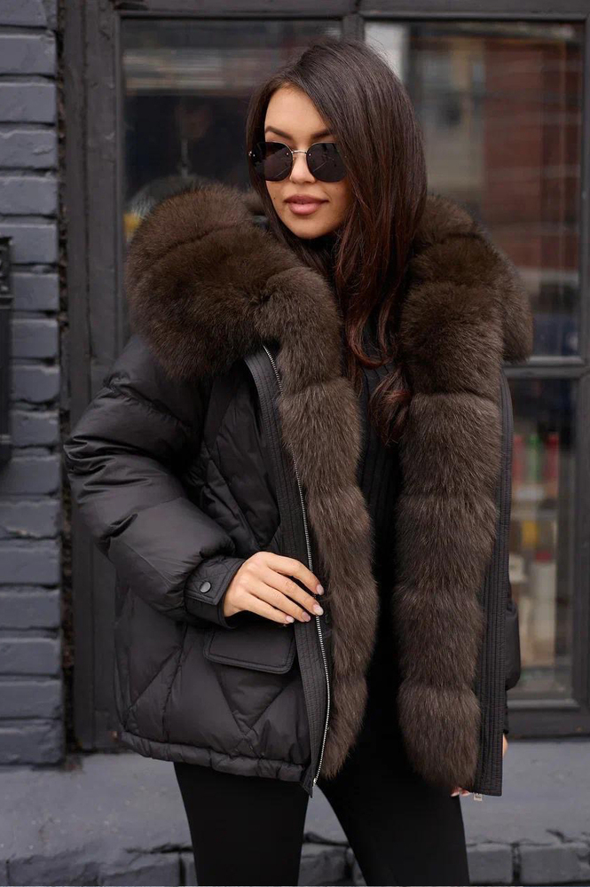 Объемный пуховик с мехом песца, выполненный в стиле оверсайз. Модель украшена стегкой в виде ромбов, которая придает ей стильный и современный вид. Внутри пуховика расположен мягкий мех песца для дополнительного тепла и уюта, а вдоль молнии идет мех песца, создавая эффектный акцент. Наполнитель из пуха и пера обеспечивает отличную теплоизоляцию, делая этот пуховик идеальным для холодных зимних дней.