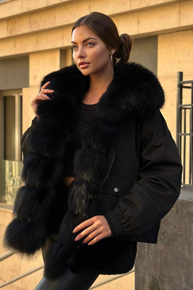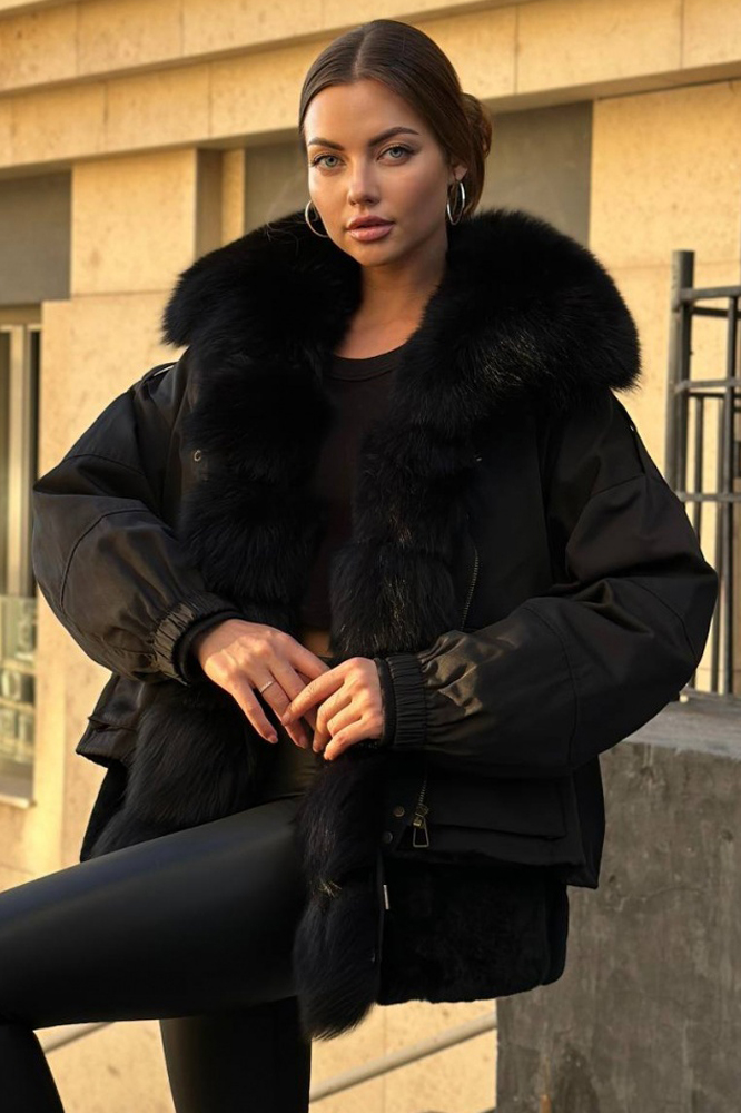 Спортивный женский пуховик с песцом на зиму купить в Москве