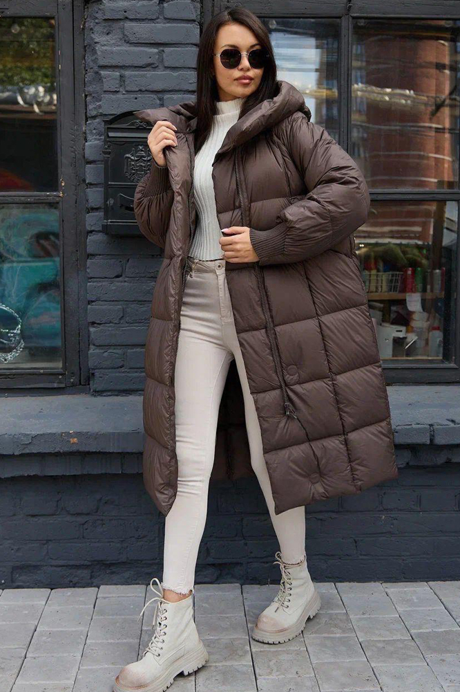 Длинный пуховик оверсайз Vivilona, зима 2025-2026 насыщенного коричневого цвета, этот пуховик воплощает концепцию свободы и комфорта. Свободный, удлинённый крой в стиле оверсайз создаёт дополнительный объем и ощущение теплоты. Тёплая подкладка и качественный наполнитель защищают от сильных морозов, а широкие рукава и удобная форма делают его комфортным даже при активном движении. Просторный капюшон обеспечивает дополнительную защиту головы и шеи, а магнтные застёжки позволяют быстро одеться и раздеться. Благодаря своему стилю и качеству, пуховик Vivilona становится прекрасным выбором для повседневных зимних выходов и прогулок по городу.