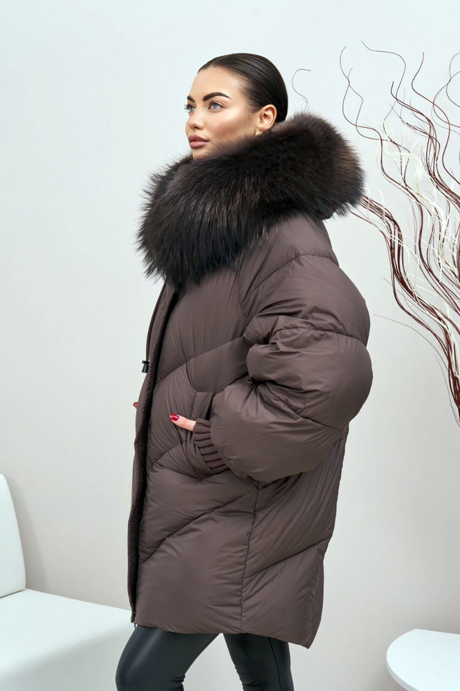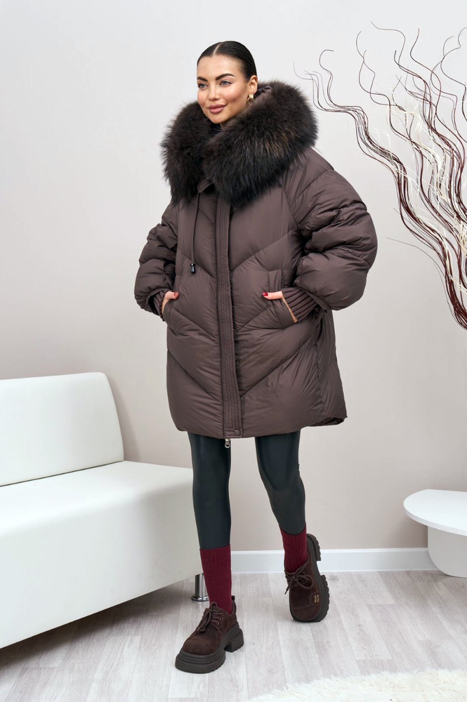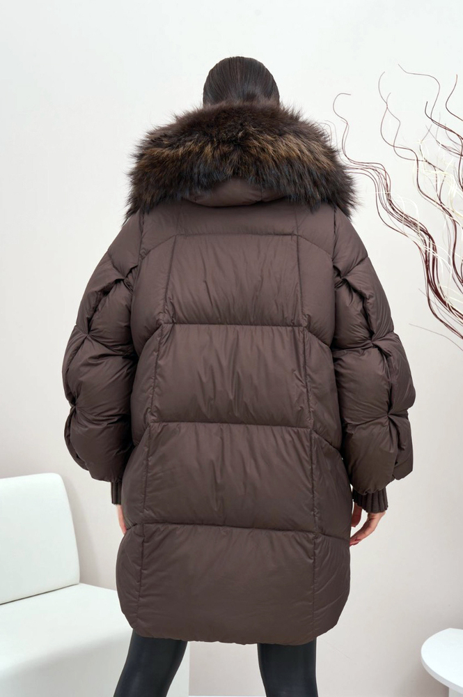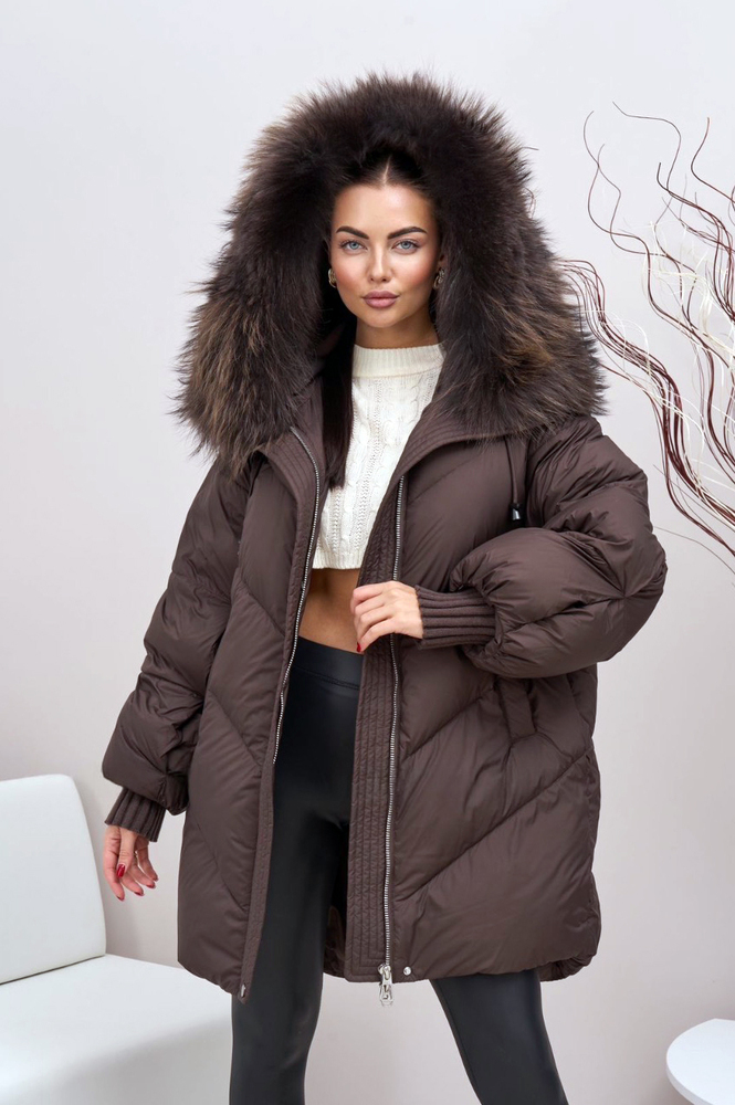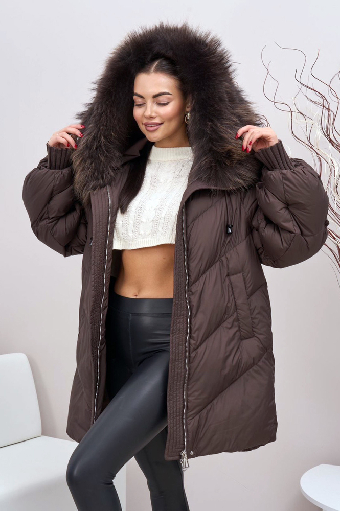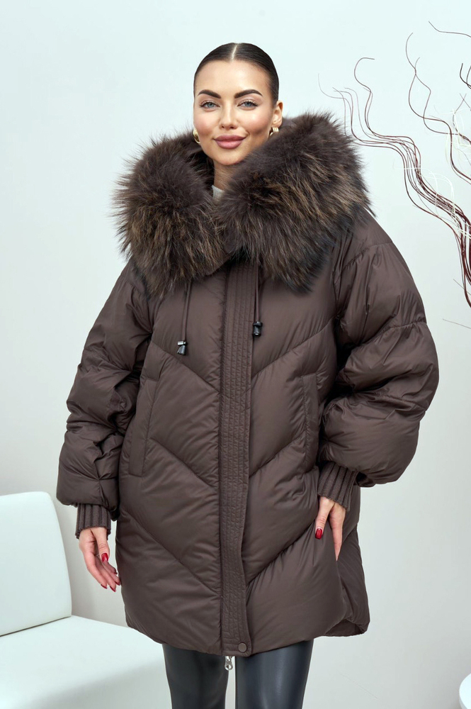 Этот теплый зимний пуховик Vivilona выполнен в коричневом цвете и идеально подходит для холодных дней. На капюшоне расположен натуральный мех енота, который добавляет роскоши и обеспечивает дополнительную защиту от ветра и холода. Внутри пуховика находится наполнитель из пуха и пера, что гарантирует высокую теплоизоляцию. Застежка — надежная молния, а внутри расположен пуховой пакет для сохранения тепла. Рукава с трикотажными манжетами плотно облегают запястье, предотвращая проникновение холодного воздуха. Этот пуховик — отличный выбор для зимы, сочетая стиль, комфорт и тепло.