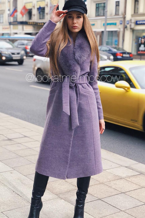 Очень много различных фасонов появилось в последние годы в женском пальто. Из новинок крой халат и оверсайз, но особым спросом пользуется расклешенное от талии. Такое изделие визуально выглядит как платье длиной в пол, хорошо вписывается в любой стиль и образ. Модели шьем из шерстяных тканей, представляем как зимние, так и осенние. на фотографии пальто на зиму с песцом, можно примерить в Москве в шоу руме.