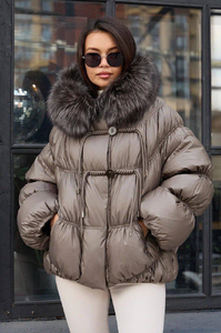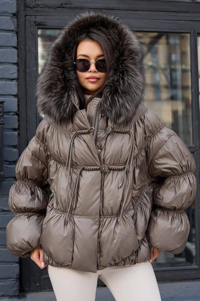 Зимняя куртка женская с натуральным мехом енота купить в Москве